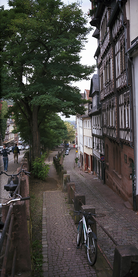 Da wollte ich eigentlich das Fachwerkhaus unten mit der Schloss oben auf’s Bild setzen. Leider zeigt der Sucher nicht genau das an, was aufgenommen wird, so dass man ein wenig üben muss, um den echten Ausschnitt zu erahnen. Hier ist der Turm des Schlosses oben abgeschnitten.