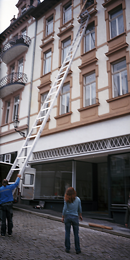 Meine tolle Idee, die Leiter als bildbestimmende Diagonale für das nächste Bild zu verwenden, ist leider auch nicht zu 100% aufgegangen. Das Bild ist links zu sehr angeschnitten. Der Mann gehört da ganz drauf! Wenn das Foto links etwas mehr und rechts etwas weniger zeigen würde, hätte es besser geklappt.